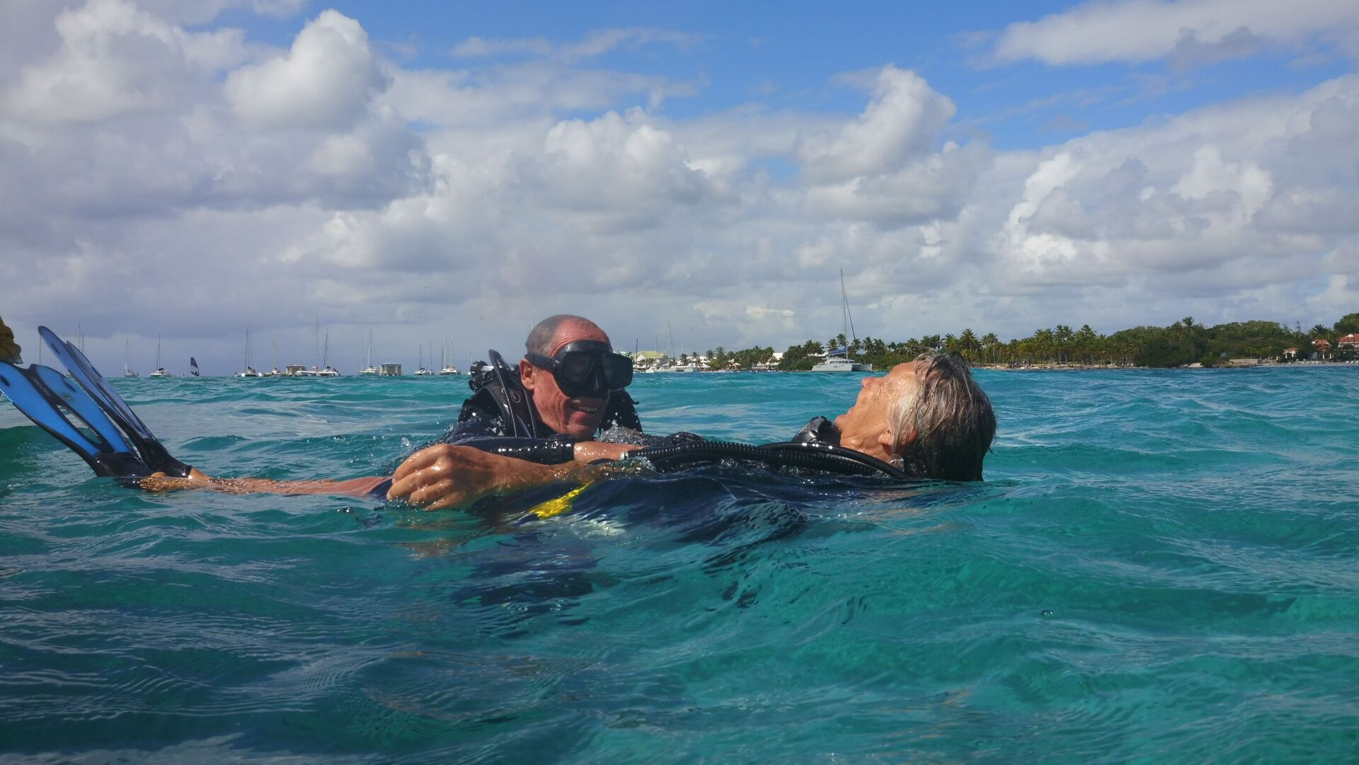 Dans le lagon peu profond de St François, à l'abri des vagues, une promenade d'une demi heure au milieu des poissons multicolores, avec un moniteur pour vous seul.